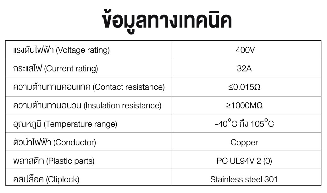 • กระแสไฟ (Current rating) : 32A