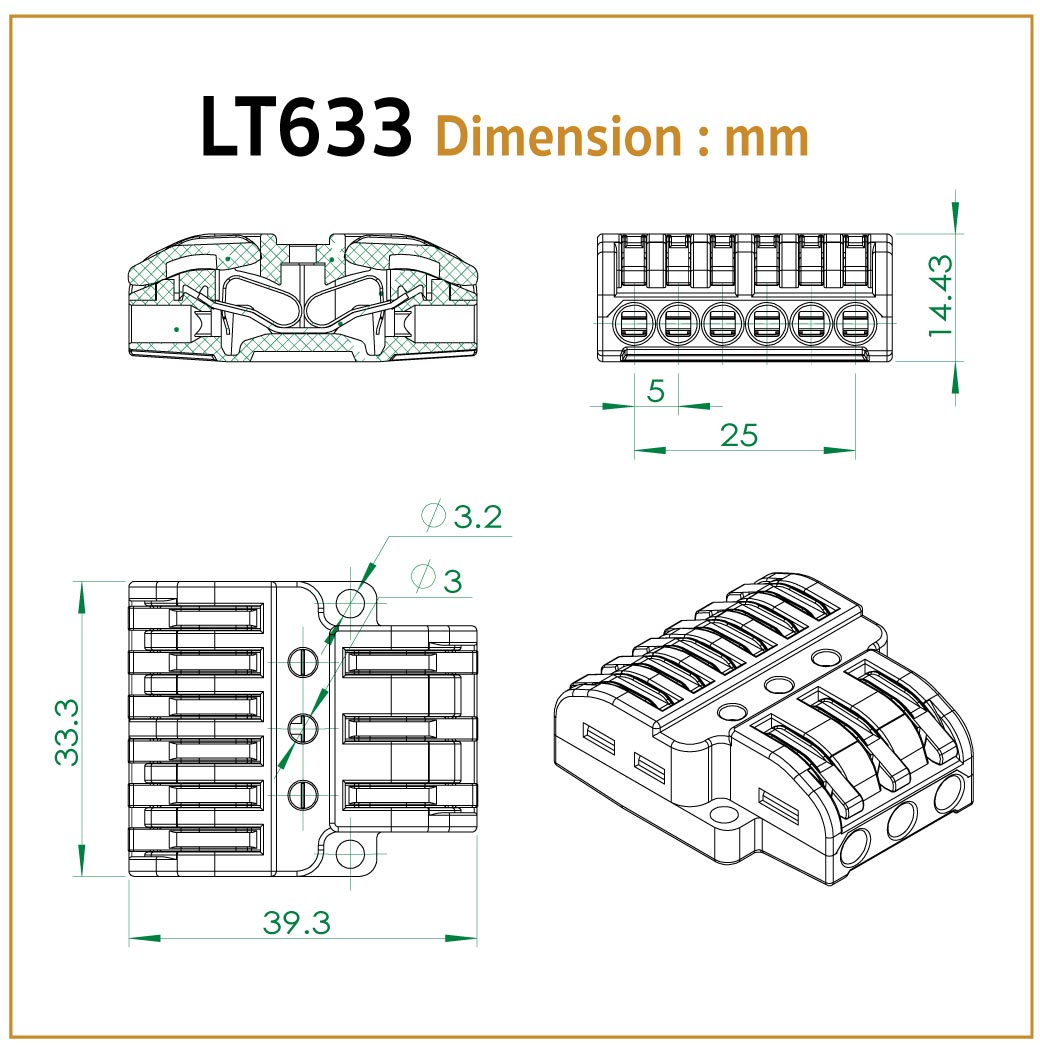 รายละเอียด ขั้วต่อสายไฟ เข้า 3 : ออก 6