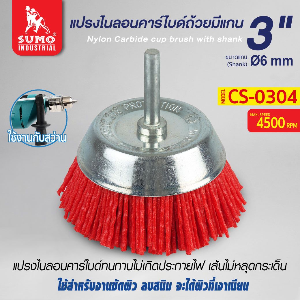 คุณกำลังรีวิว:แปรงไนลอน ถ้วยมีแกน 3"x6mm SUMO