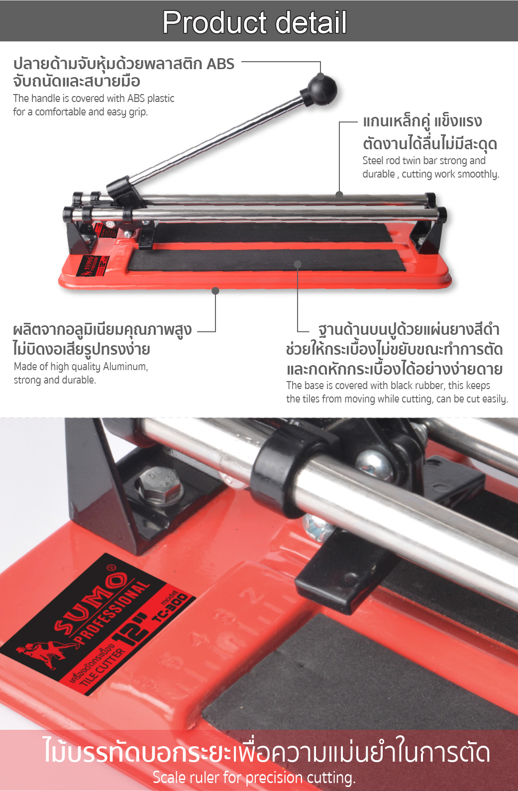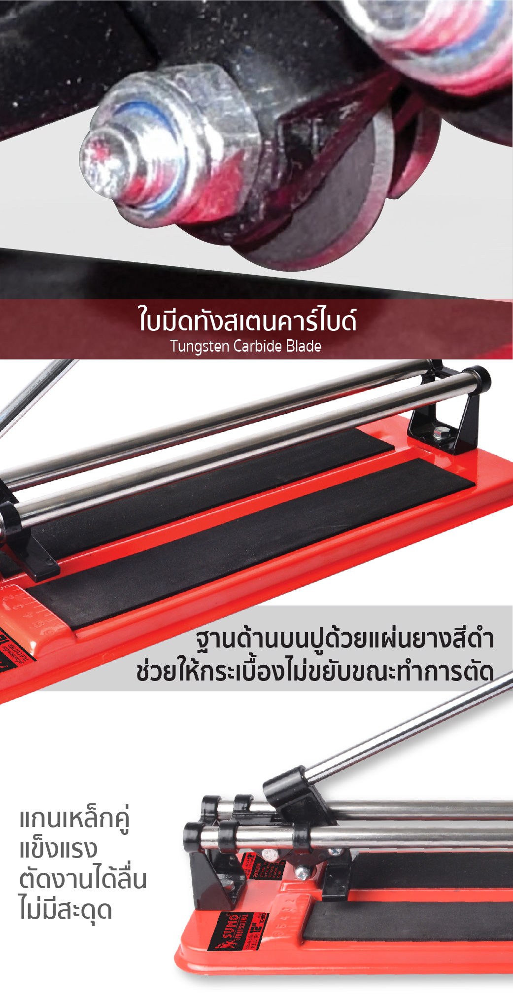 • ตัดกระเบื้องความหนาไม่เกิน 10 มม. ตัดได้ทั้งแนวตรง และแนวเฉียง