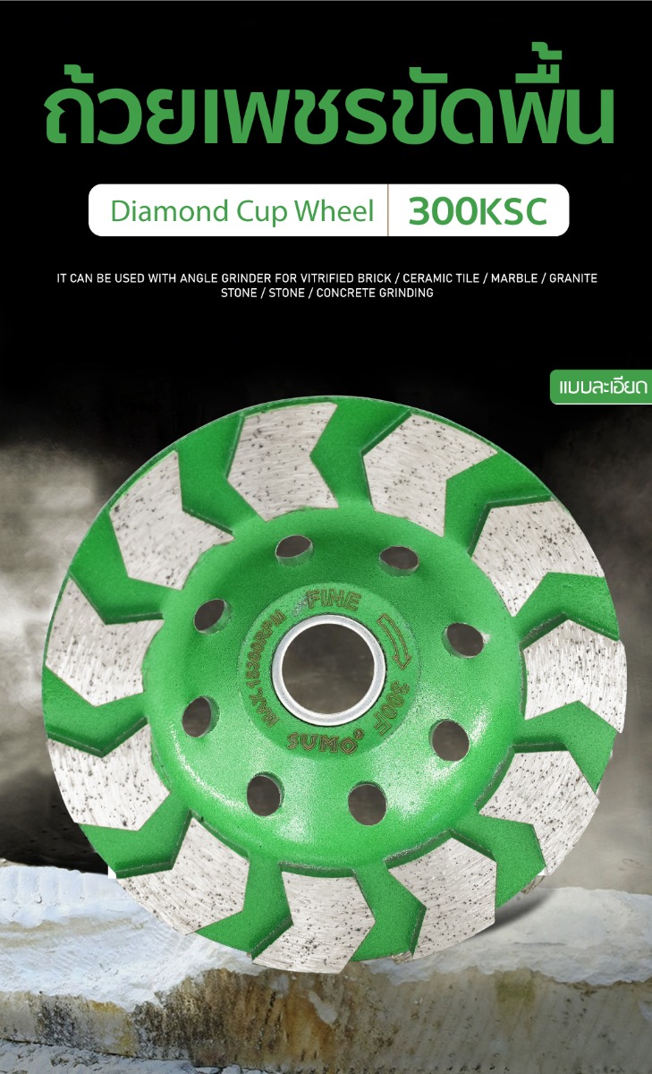 คุณกำลังรีวิว:ถ้วยเพชรขัดพื้น 4" ขัดละเอียด 300F GREEN