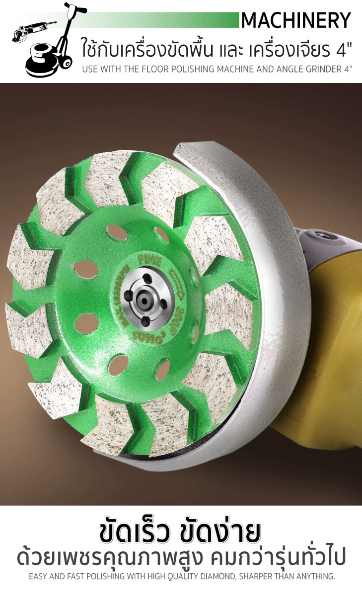 • ใช้กับเครื่องขัดพื้นและเครื่องเจียร 4"