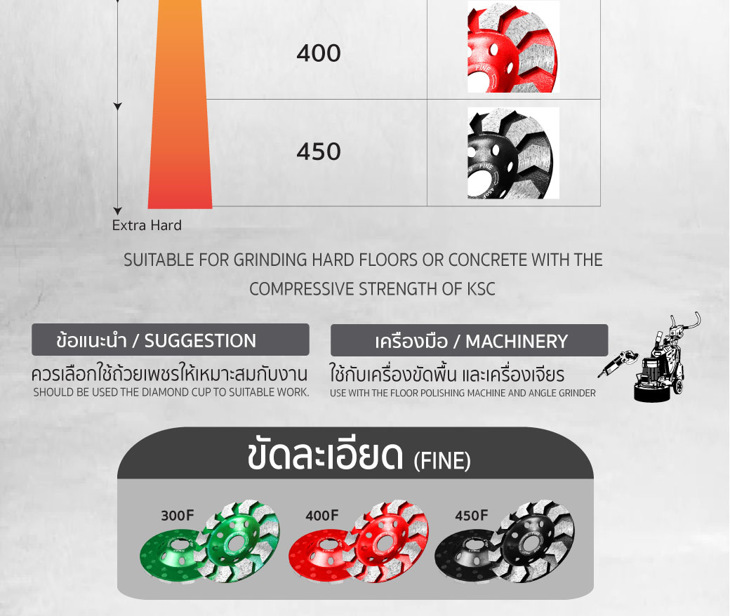 • ขัดพื้นคอนกรีตที่มีความแข็งมากเป็นพิเศษ