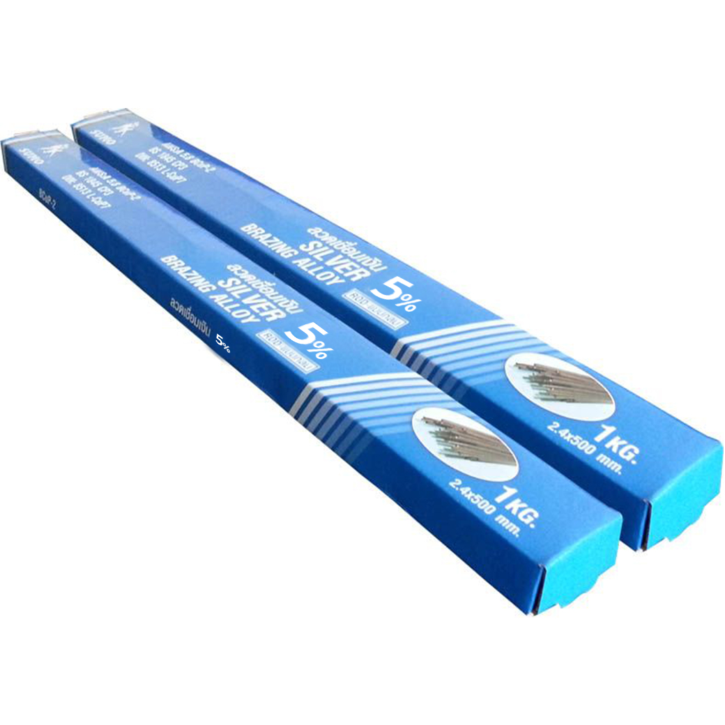 ลวดเชื่อมเงิน 5% แบบประหยัด ใช้สำหรับเชื่อม ทองแดงกับทองแดง เหมาะกับงานเชื่อมที่มีช่องว่างระหว่างชิ้นงานไม่มาก (ประมาณ 0.1 mm) คุณภาพการใหลดี และหากจะใช้เชื่อมทองเหลืองจะต้องใช้ฟลักซ์ร่วมด้วย