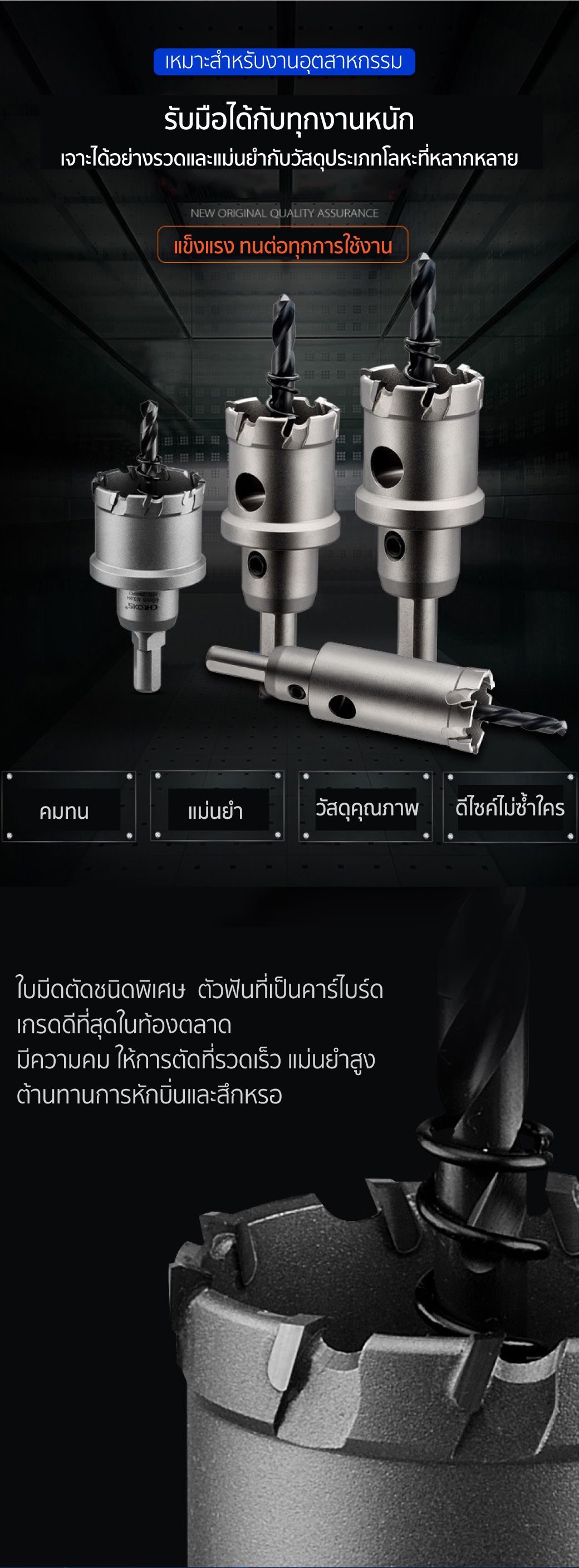 • ใบมีดชนิดพิเศษ เม็ดคาร์ไบด์ที่มีความคมสูง แข็งแรง
