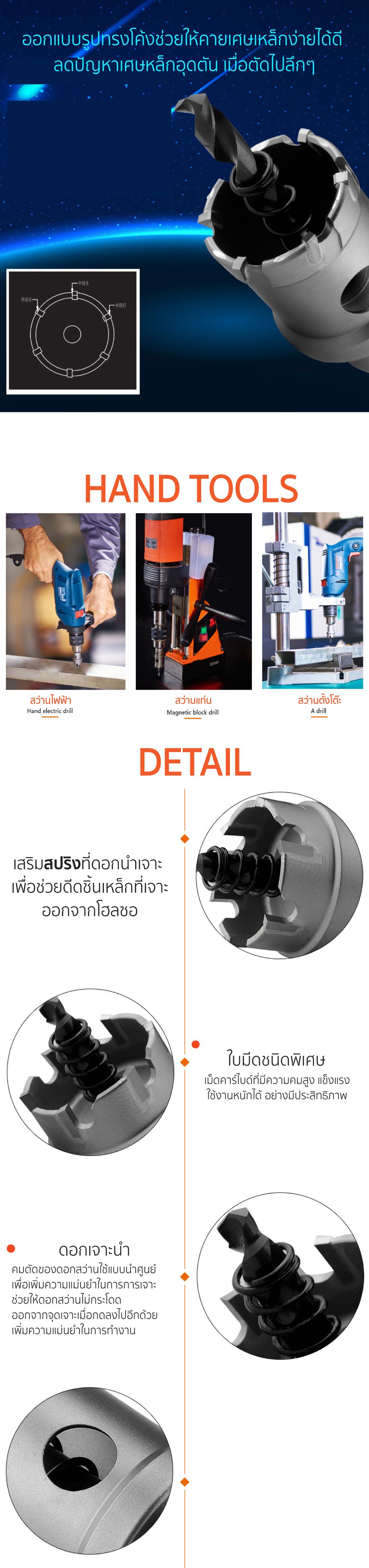 • เหมาะสำหรับเจาะเหล็ก เหล็กหล่อให้เป็นรู แข็งแรง คมทน ทนต่อทุกการใช้งาน