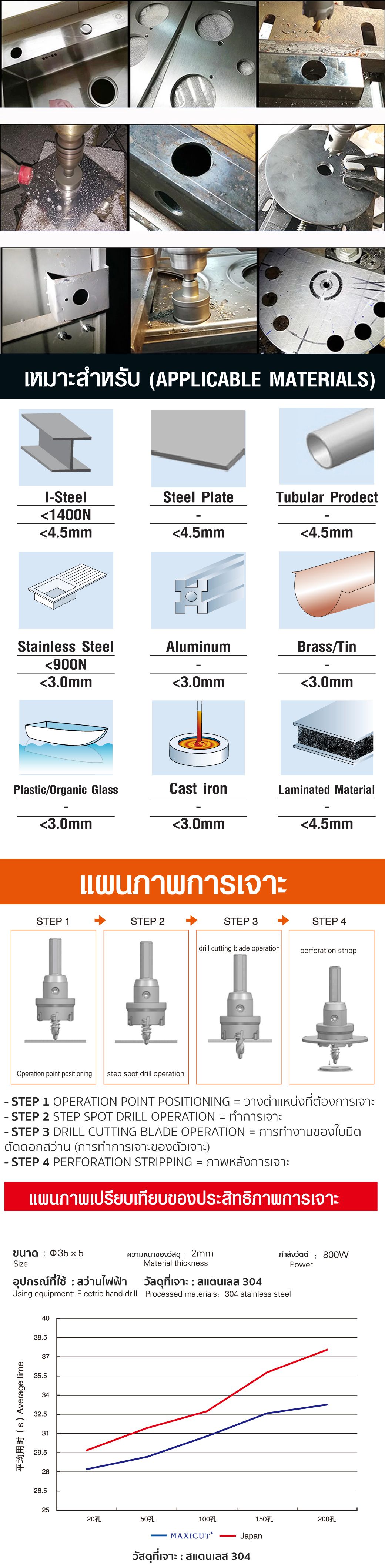 • เจาะได้อย่างรวดเร็วและแม่นยำใช้กับวัสดุประเภทโลหะที่หลากหลาย