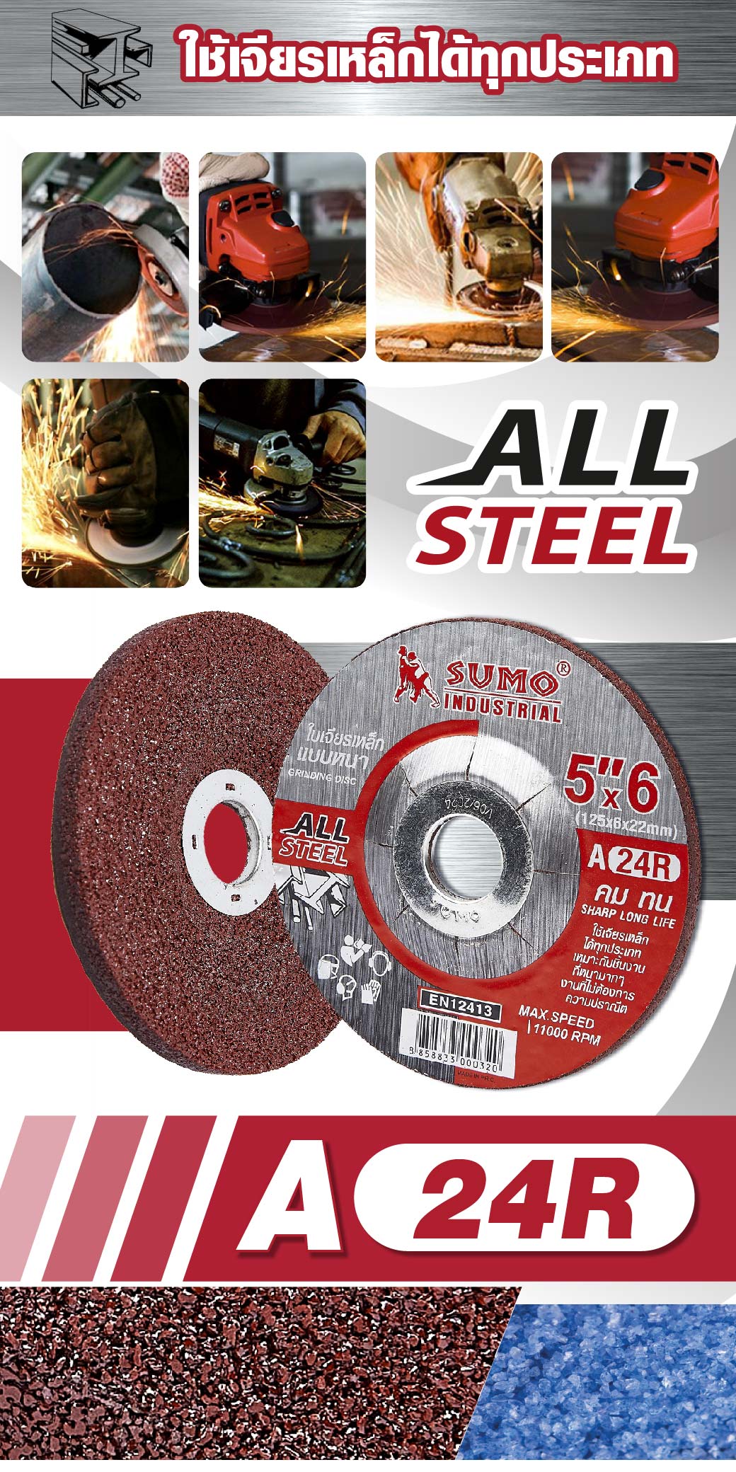 ใบเจียรเหล็ก 5"x6 (125x6mm) A(24R) หนา SUMO