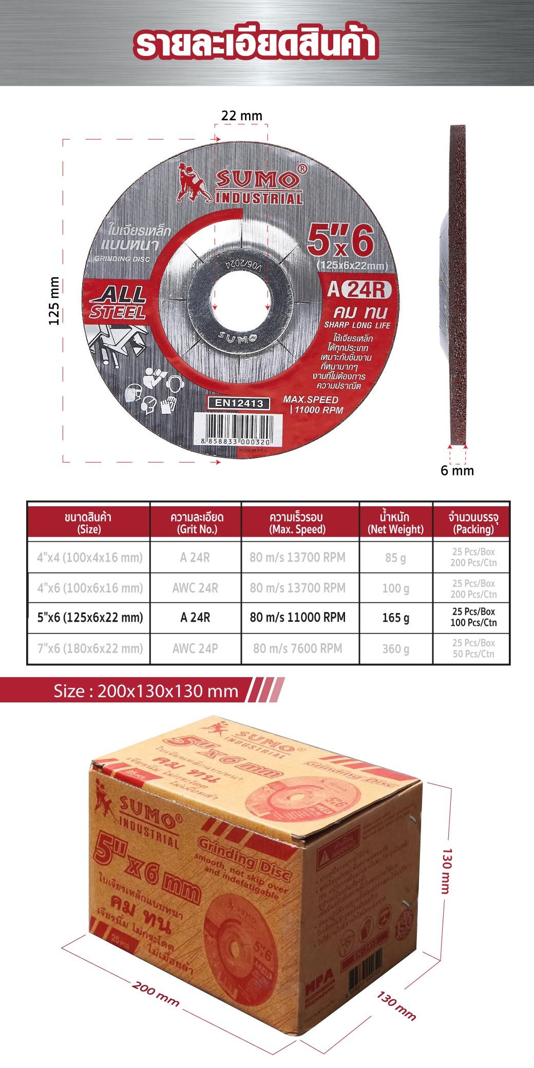 คุณกำลังรีวิว:ใบเจียร 5” (125x6mm) หนา SUMO สีแดง