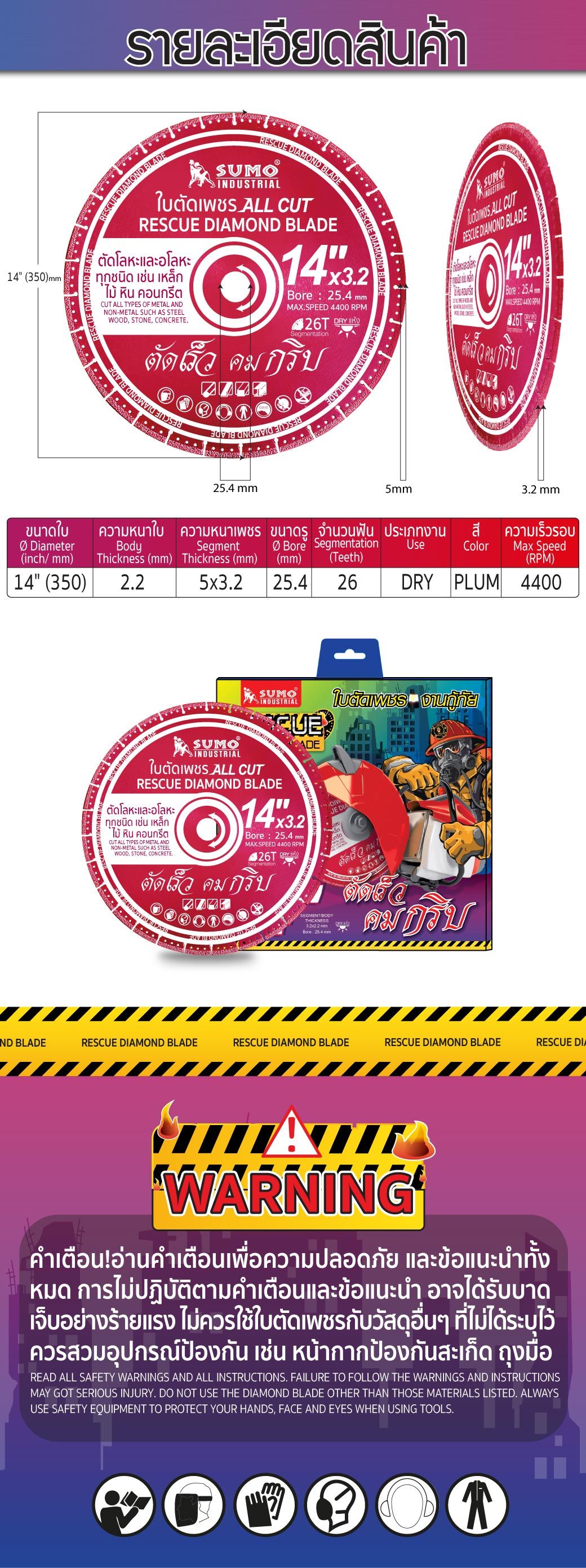 คุณกำลังรีวิว:ใบตัดเพชร 14" SUMO สำหรับงานกู้ภัย