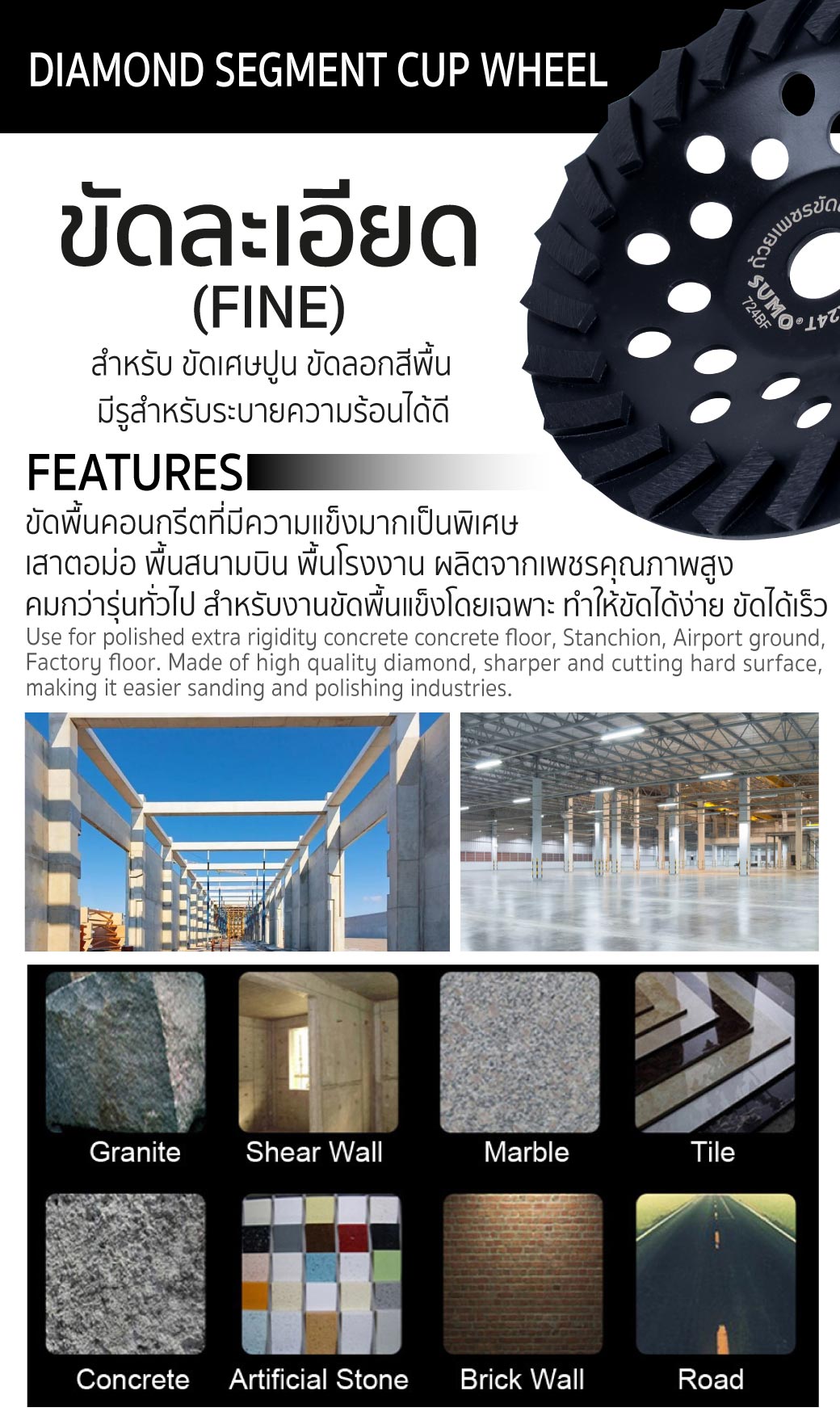 • ขัดง่าย ขัดเร็ว เหมาะสำหรับขัดพื้นคอนกรีตที่มีความแข็งมากเป็นพิเศษ