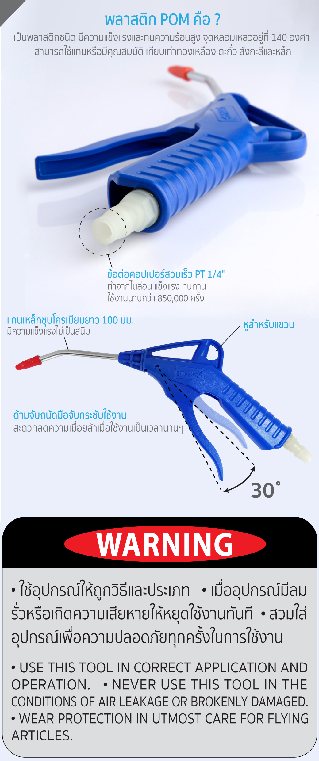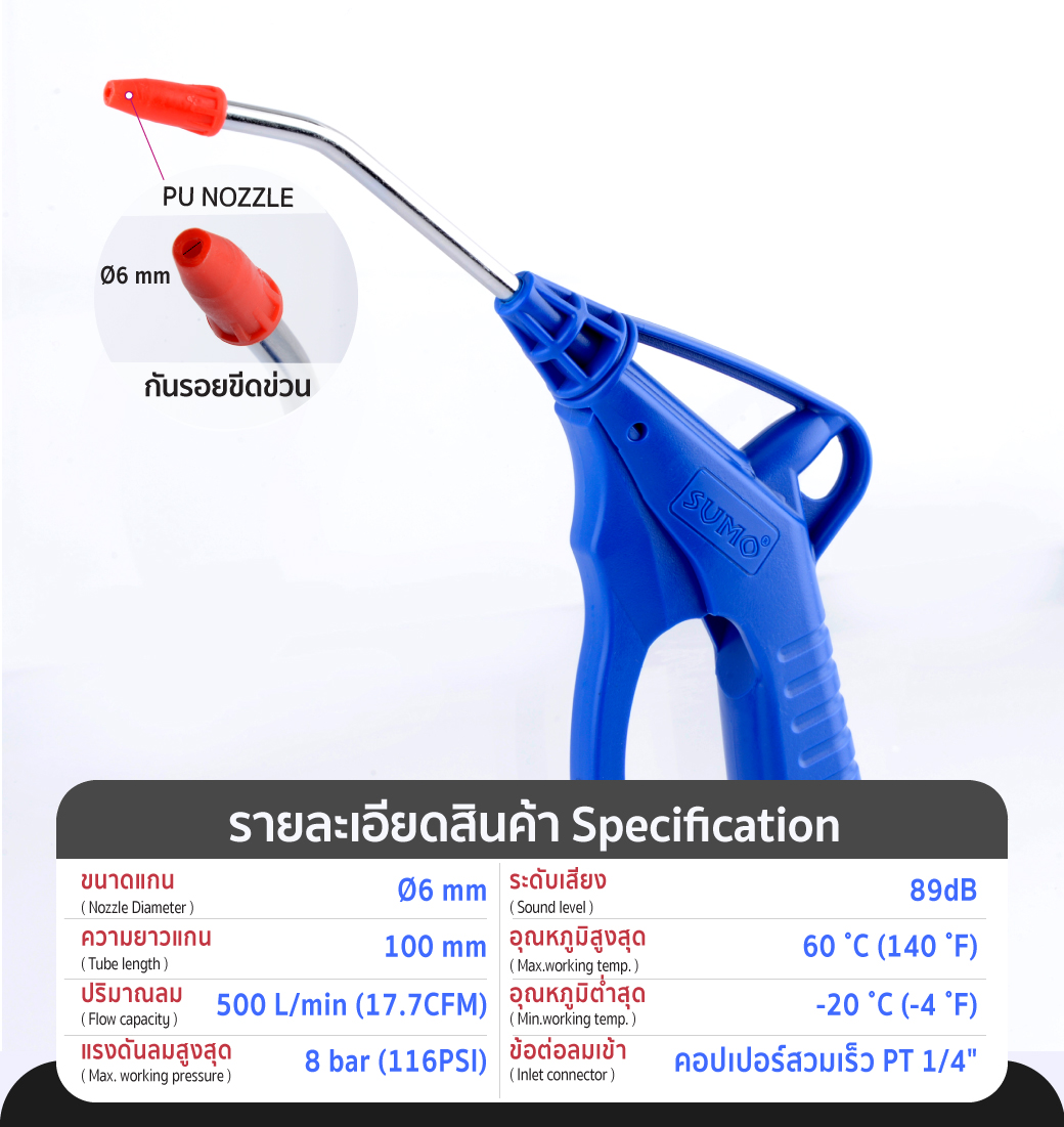 • ปืนฉีดลม ใช้กับปั๊มลมที่แรงดันลมไม่เกิน 8 บาร์