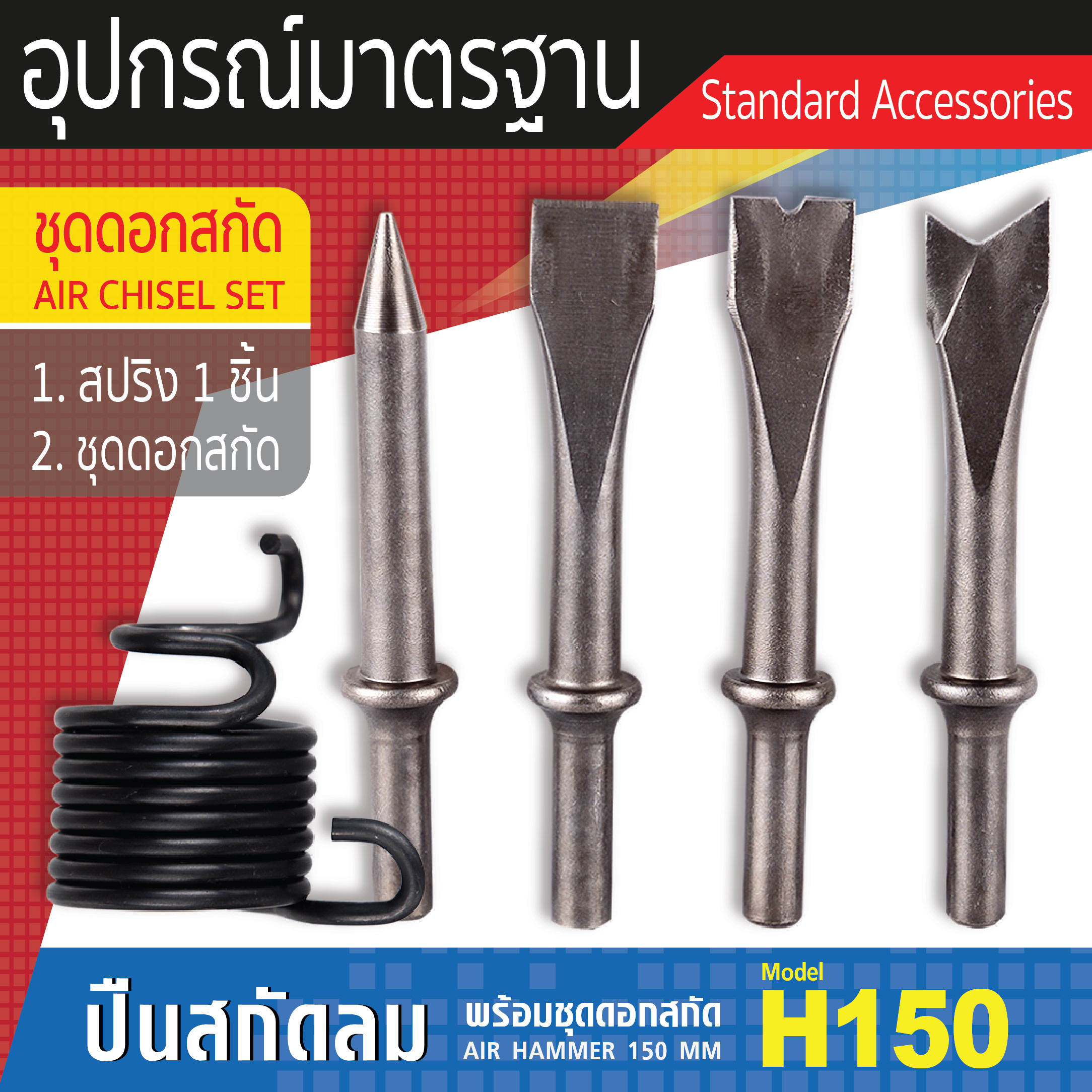 ปืนสกัดลม พร้อมชุดดอกสกัด H150 ไม่ว่าจะเป็นงานเจาะเซาะร่องก็รวดเร็วทันใจ มาพร้อมกับแรงบิดที่แม่นยำ