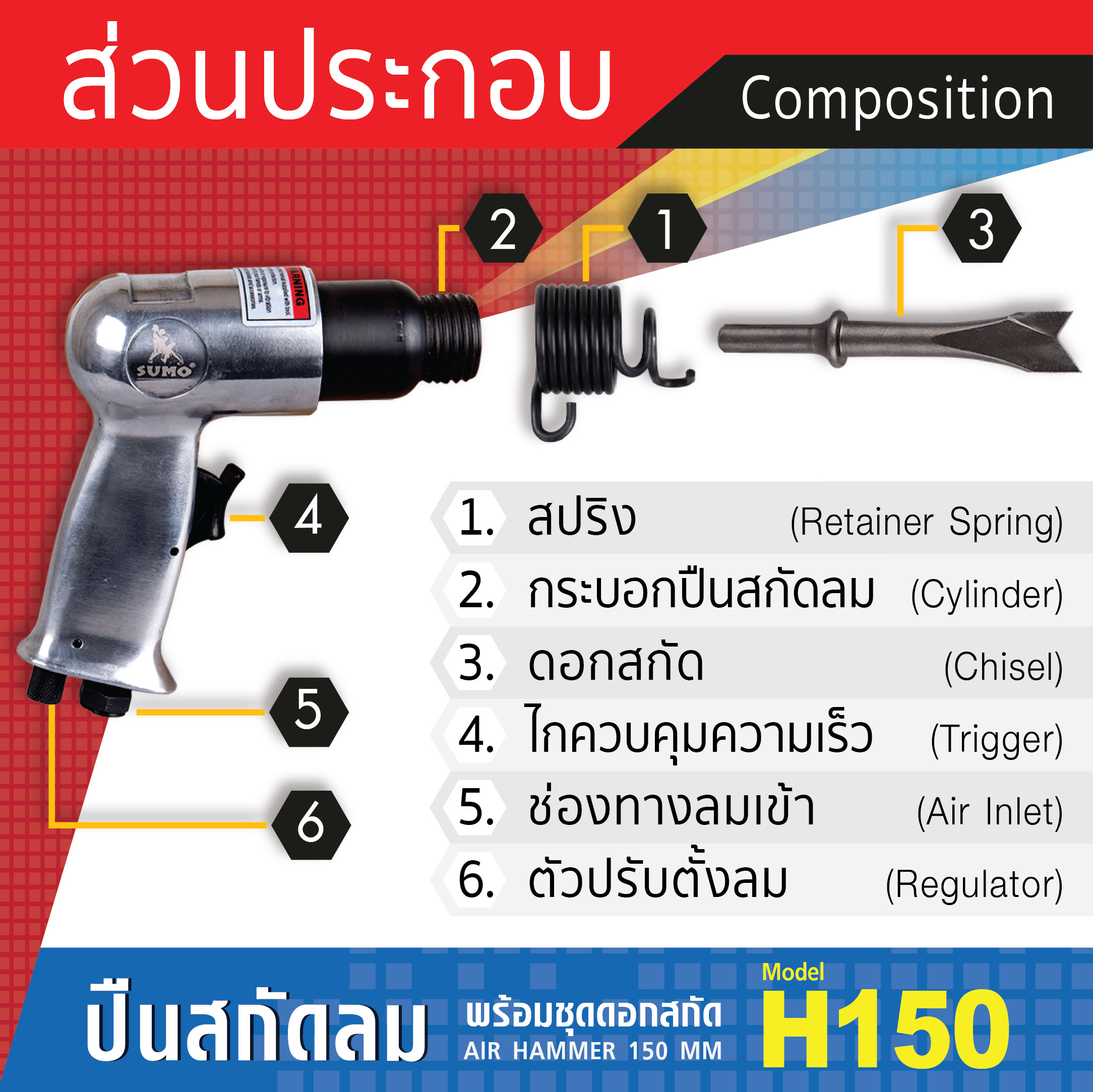 • ปืนสกัดลม สกัดลม ใช้งานกับดอกสกัด ขนาด 150 มม.