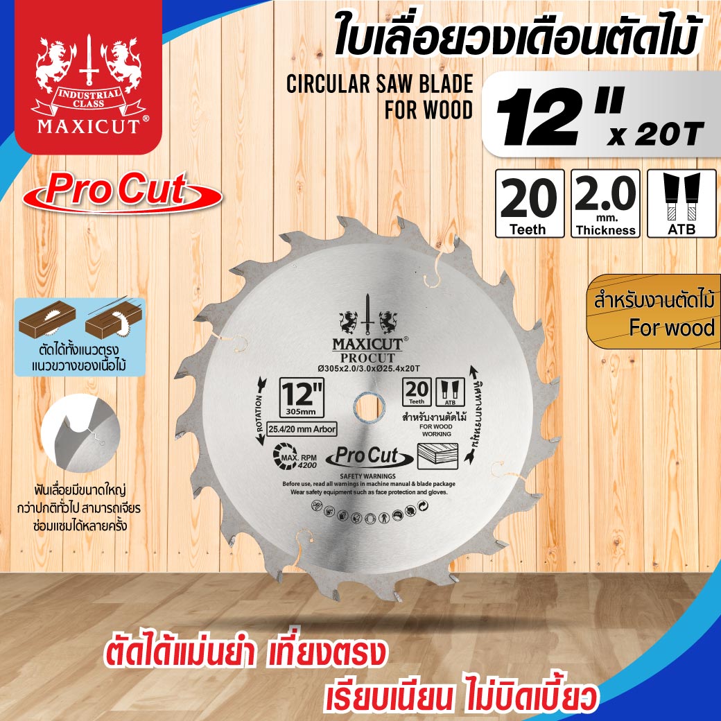 ใบเลื่อยวงเดือน size : 12"x20T MAXICUT Procut