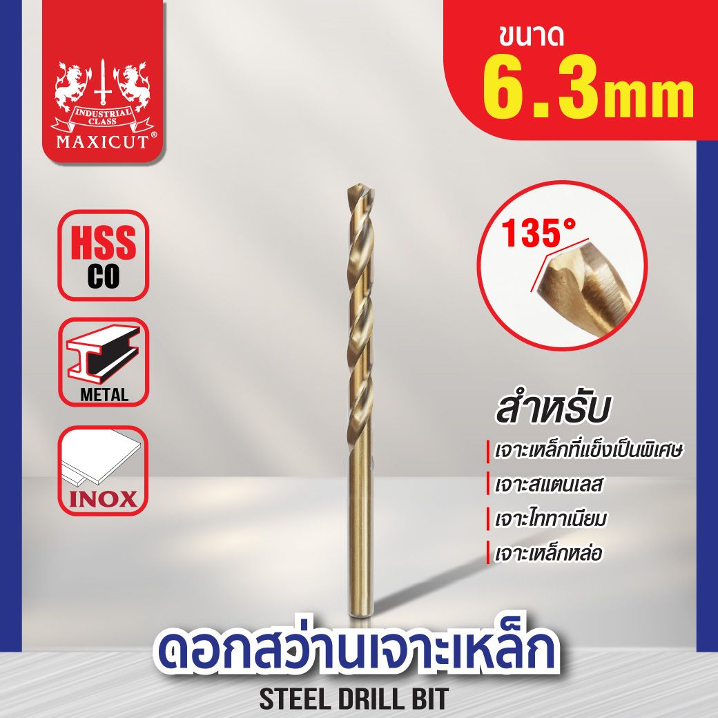 ดอกสว่านโคบอลต์ (HSS+CO) ขนาด 6.3 มม. แข็งแรงทนทาน เจาะเหล็กที่มีความหนาได้ เจาะชิ้นงานได้ง่าย ดอกสว่านเจาะสแตนเลส