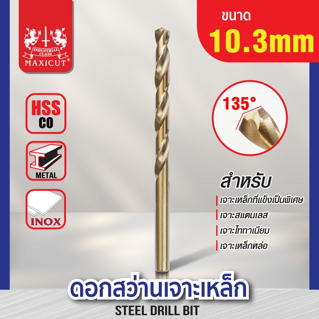 ดอกสว่านโคบอลต์ (HSS+CO) ขนาด 10.3 มม. แข็งแรงทนทาน เจาะเหล็กที่มีความหนาได้ เจาะชิ้นงานได้ง่าย ดอกสว่านเจาะสแตนเลส