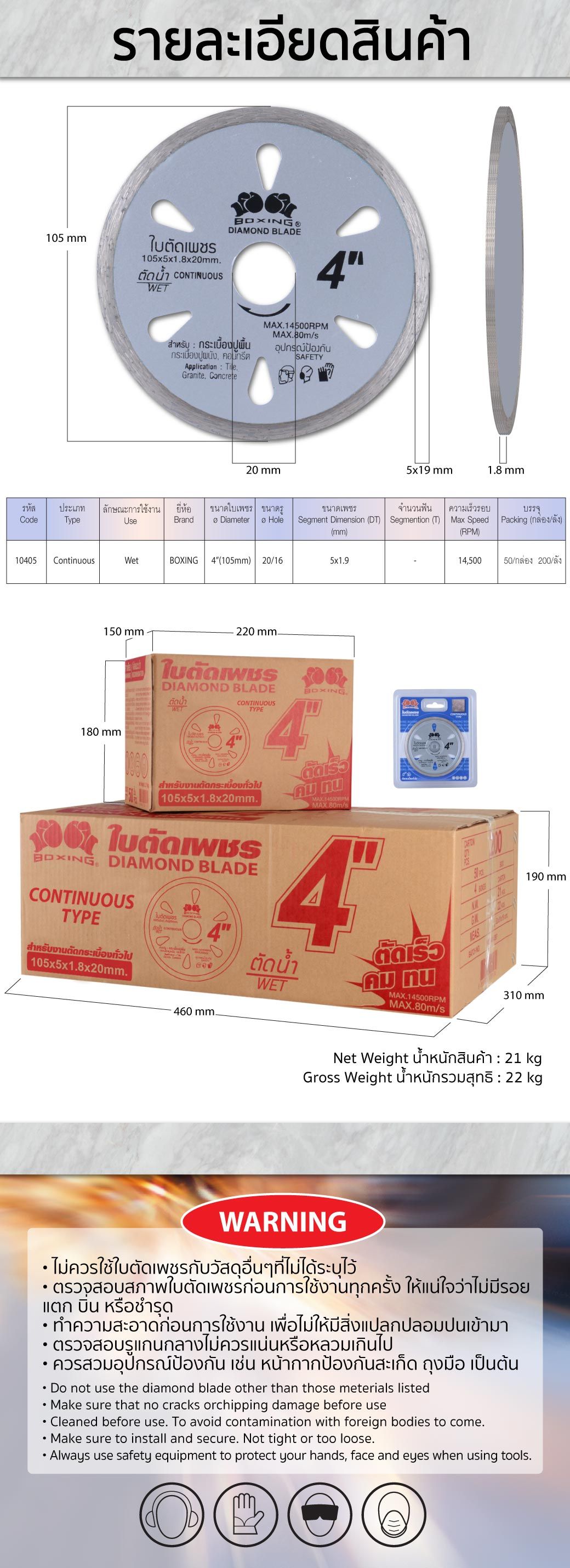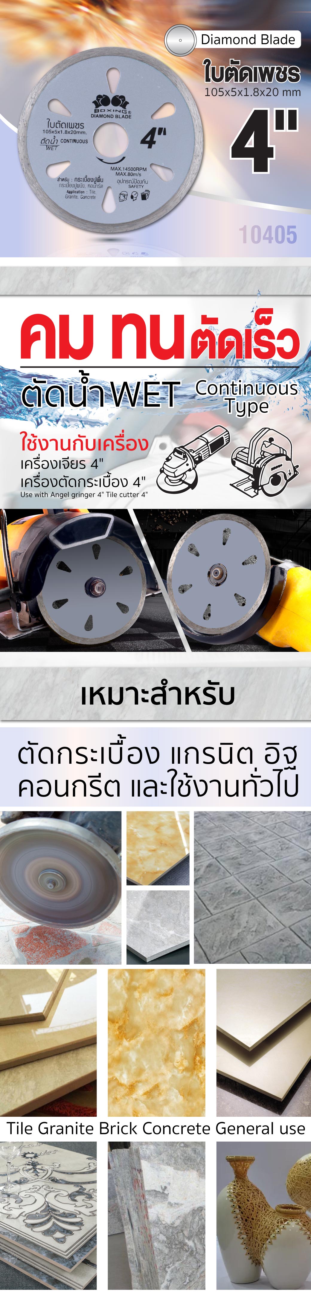 คุณกำลังรีวิว:ใบตัดเพชร 4”x5 BOXING (10405) Continuous