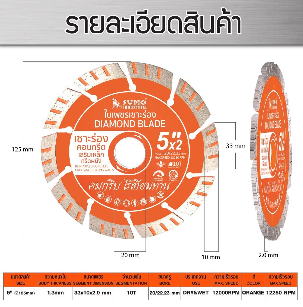 • ใบตัดเพชร 5"x2.0x10 SUMO