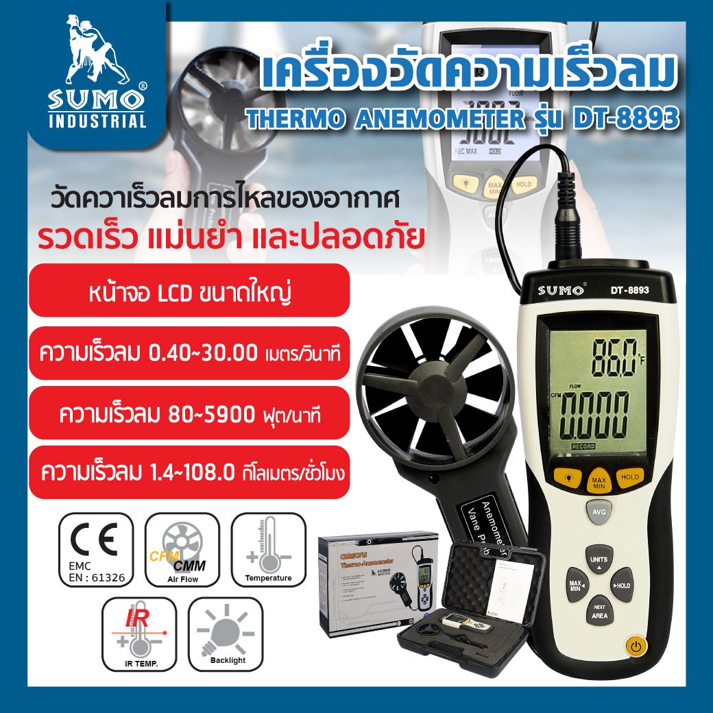 คุณกำลังรีวิว:เครื่องวัดความเร็วลม รุ่น DT-8893 SUMO