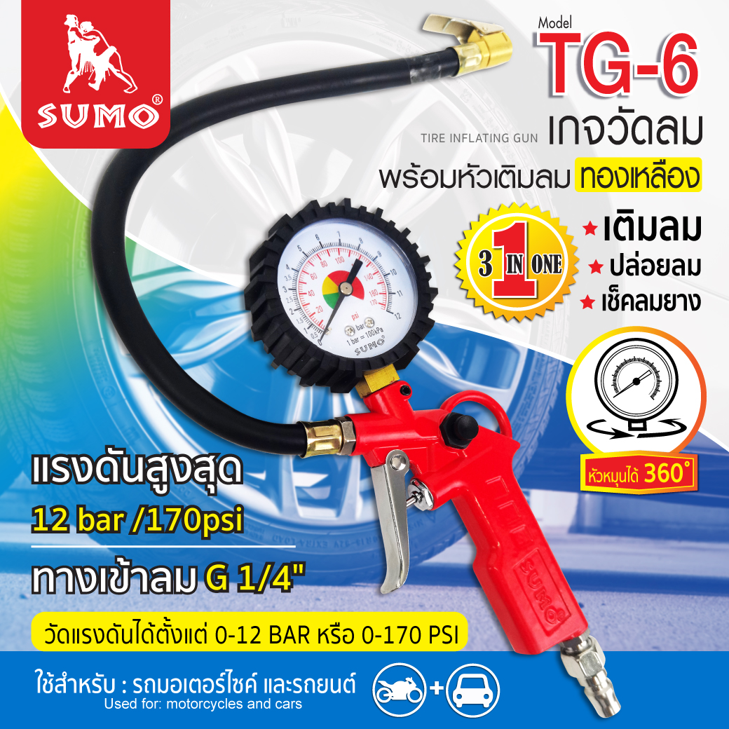 เกจวัดลมพร้อมหัวเติมลม รุ่น TG-6 SUMO