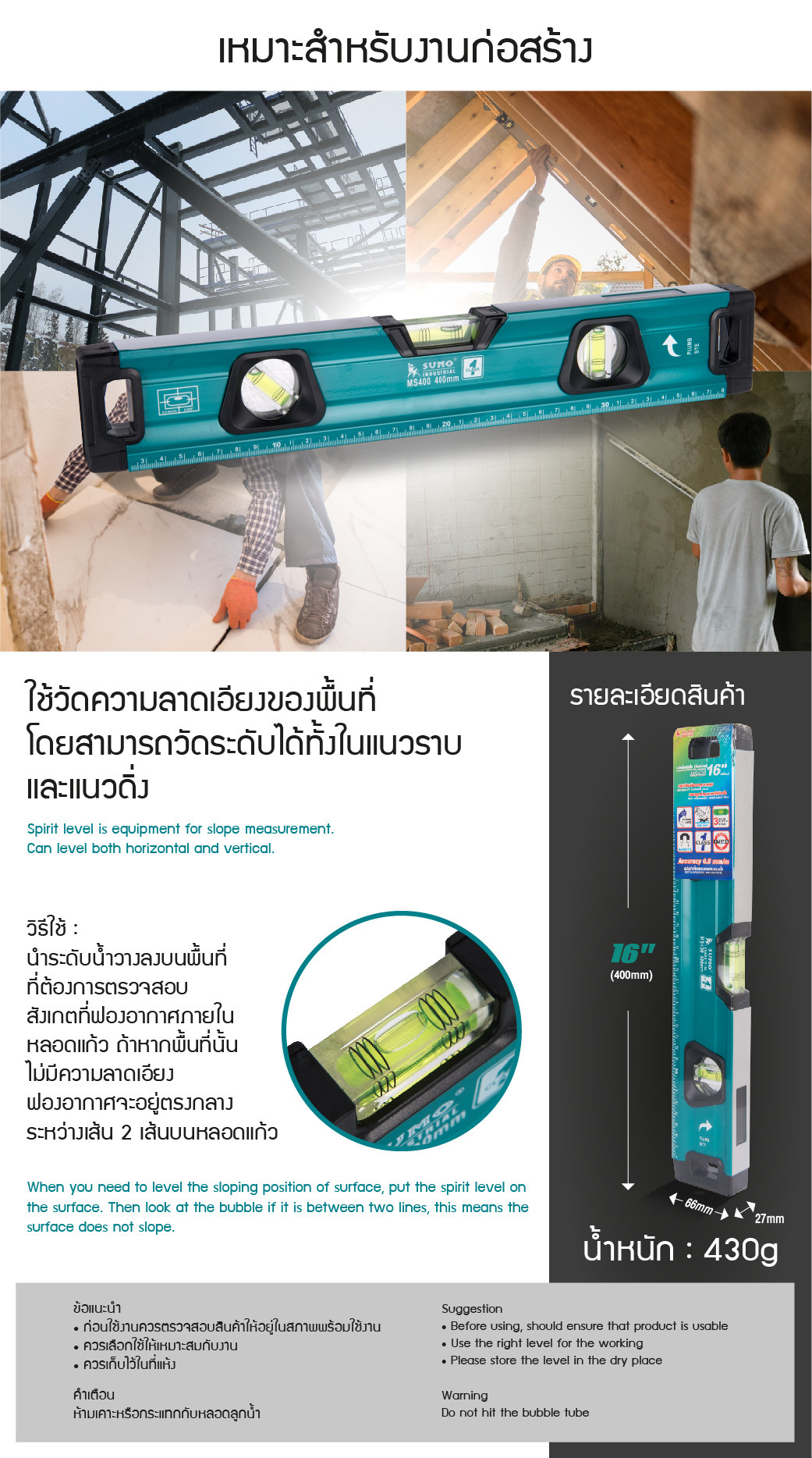 คุณกำลังรีวิว:ระดับน้ำแม่เหล็ก (มีหน้าต่าง) 16" รุ่น MS400 SUMO