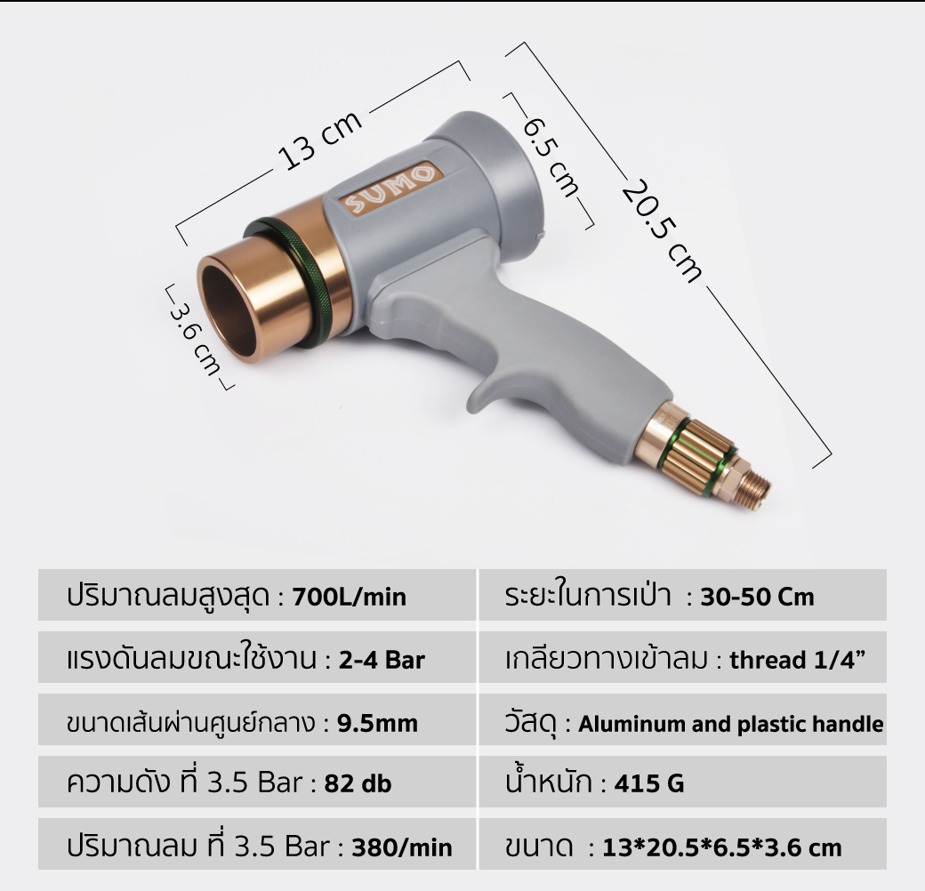 • อัตราการใช้ลม ที่ 3.5 บาร์ : 380L/min (13.4 CFM)