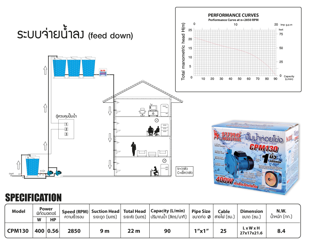 ปั๊มน้ำหอยโข่ง รุ่น CPM130 SUMO