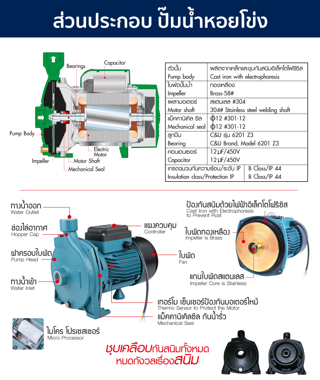 • กำลังวัตต์เต็ม 1100W (1.5HP) มอเตอร์ ทองแดงแท้