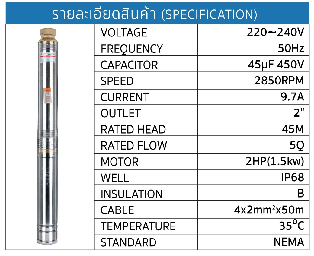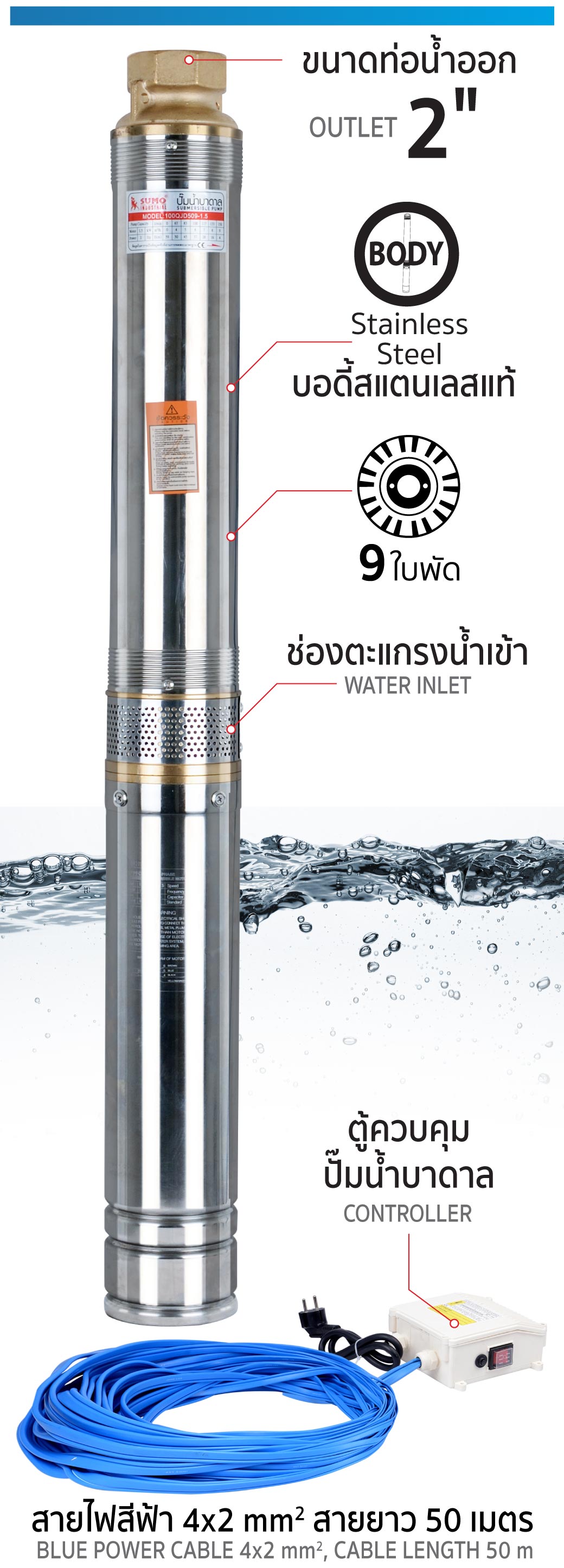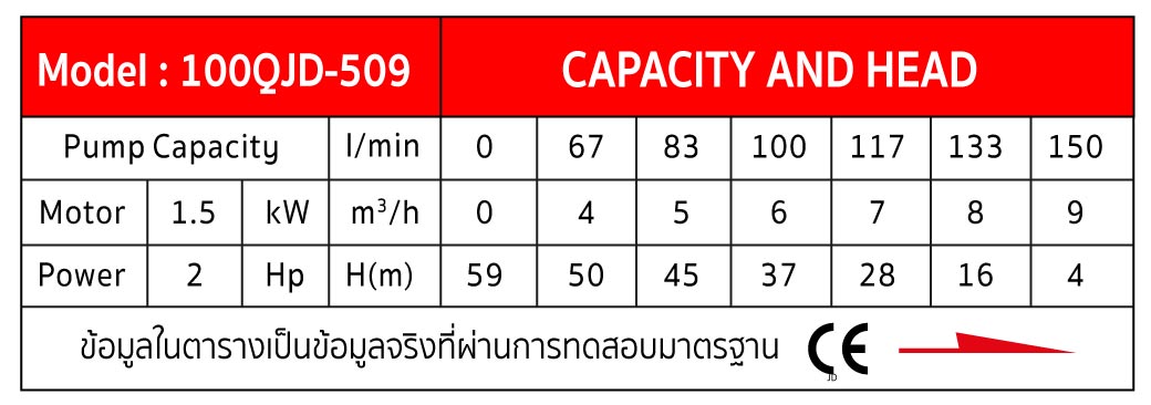 คุณกำลังรีวิว:ปั๊มน้ำบาดาล รุ่น 100QJD-509 2.0HP SUMO