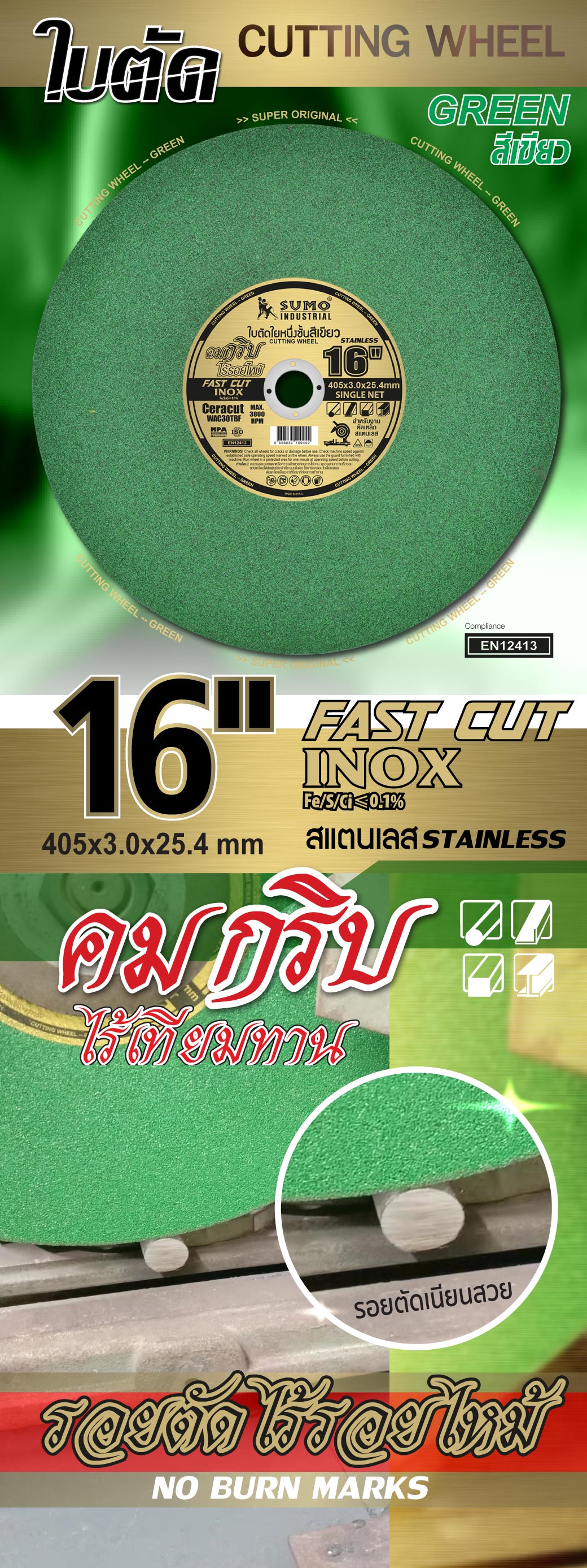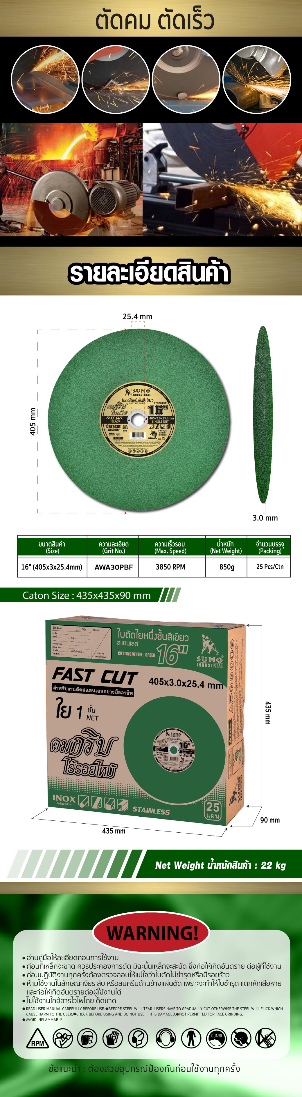 คุณกำลังรีวิว:ใบตัด 16"x3x25.4 SUMO สีเขียว