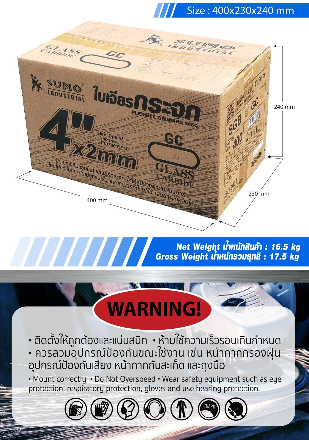 • ห้าม ใช้ใบเจียร/ตัดผิดประเภทของการใช้งาน เช่น ห้ามนำใบตัดไปใช้สำหรับงานเจียร