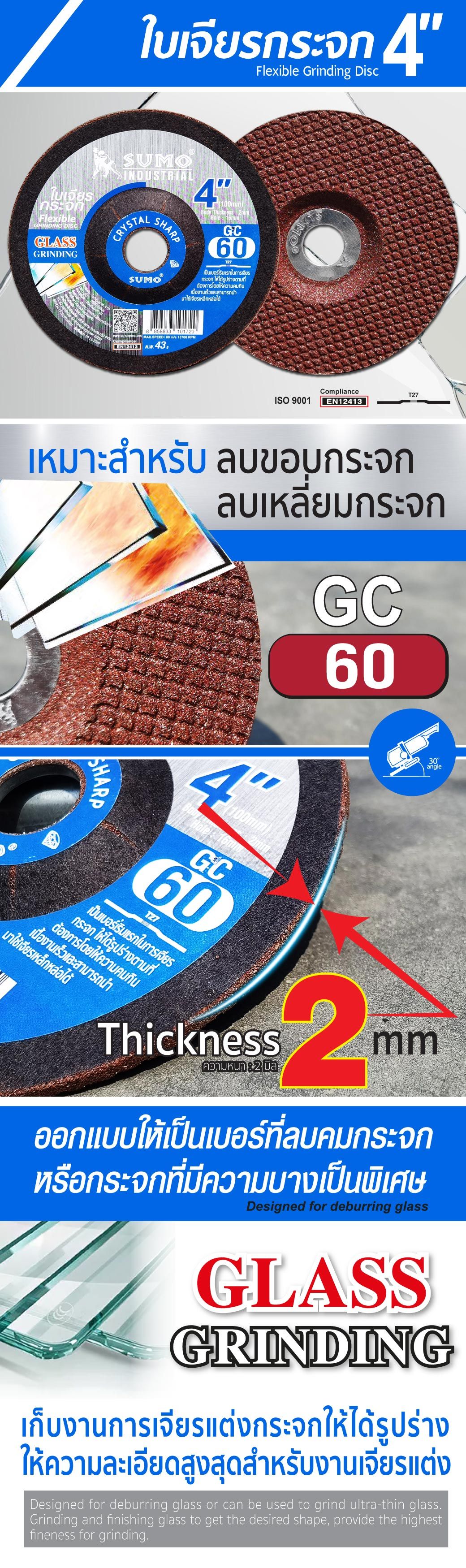 • ออกแบบให้ GC60 เป็นเบอร์เริ่มแรกในการเจียรกระจกให้ได้รูปร่างที่ต้องการ