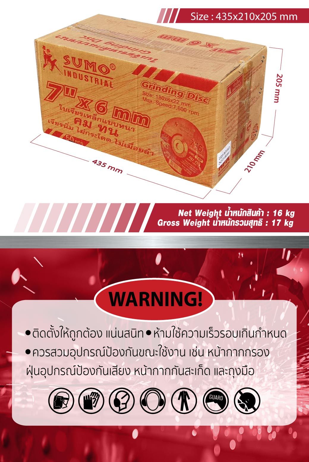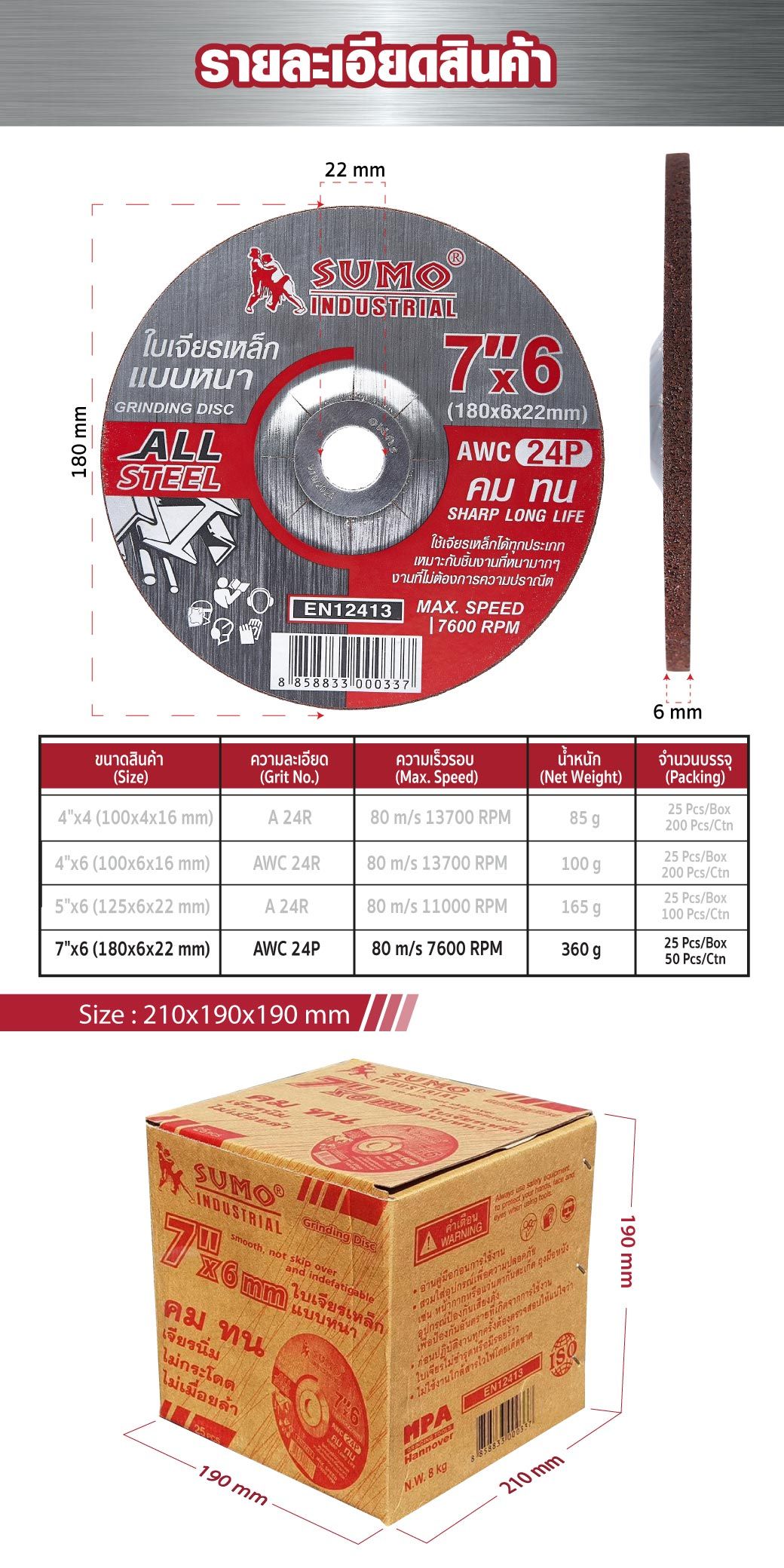 คุณกำลังรีวิว:ใบเจียร 7” (180x6mm) หนา SUMO สีแดง