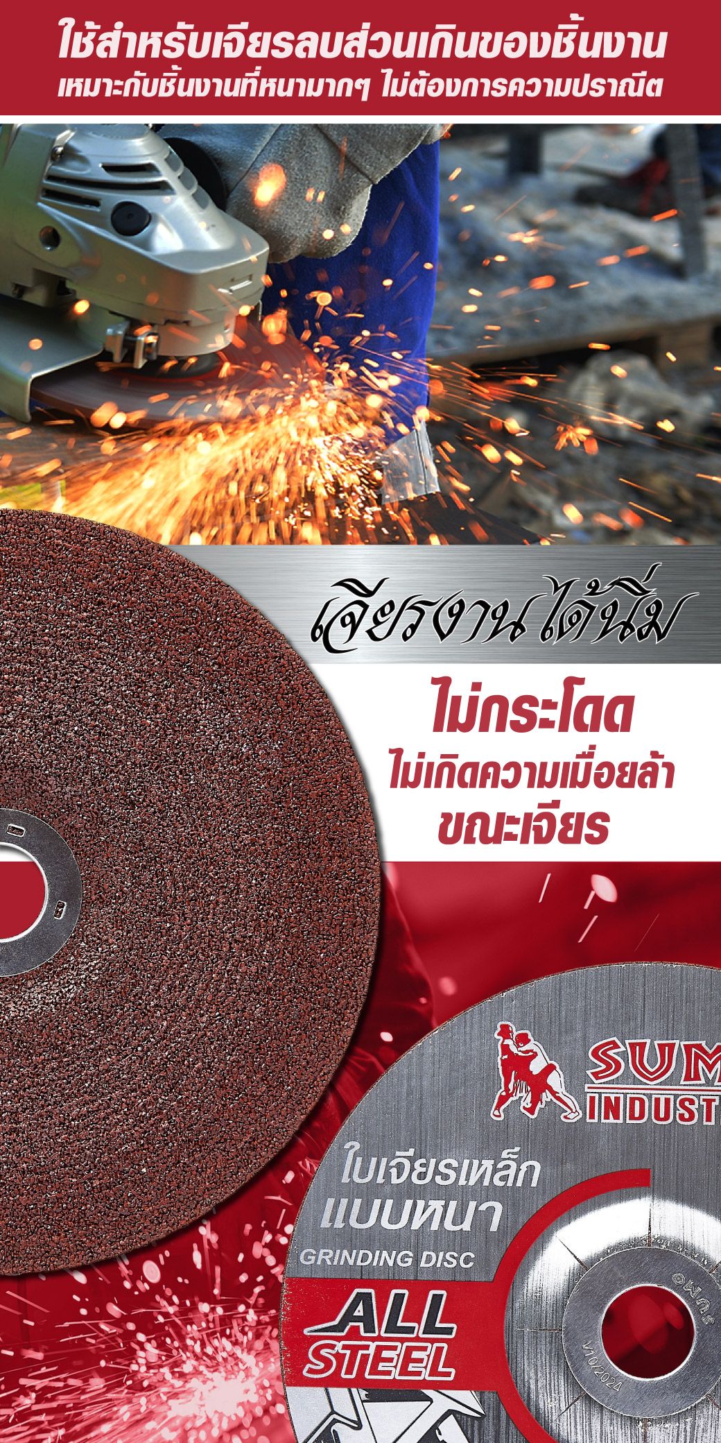ใบเจียรเหล็กแบบหนา คม ทน เจียรงานได้นิ่ม เหมาะกับชิ้นงานที่หนามากๆ ไม่ต้องการความปราณีต