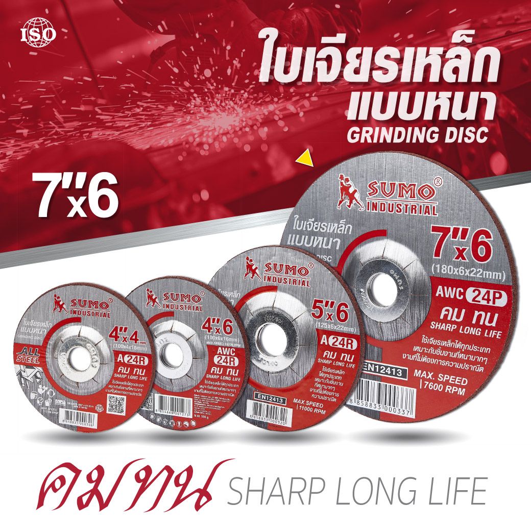 ใบเจียรเหล็ก 7"x6 (180x6mm) A หนา SUMO