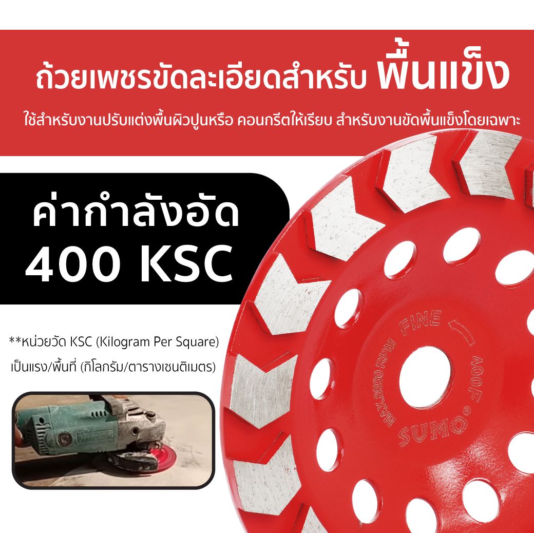 คุณกำลังรีวิว:ถ้วยเพชรขัดพื้น 7" ขัดละเอียด 400F RED