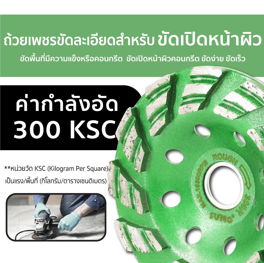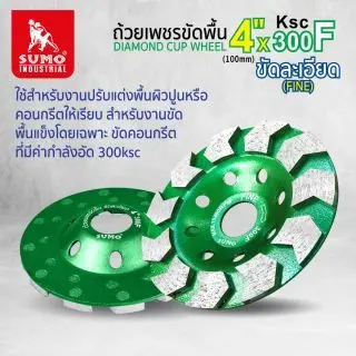 คุณกำลังรีวิว:ถ้วยเพชรขัดพื้น 4" ขัดหยาบ 300R GREEN