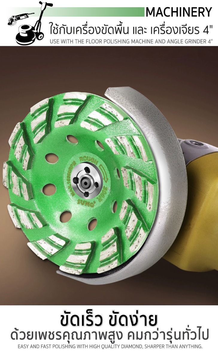 • ใช้กับเครื่องขัดพื้นและเครื่องเจียร 4"