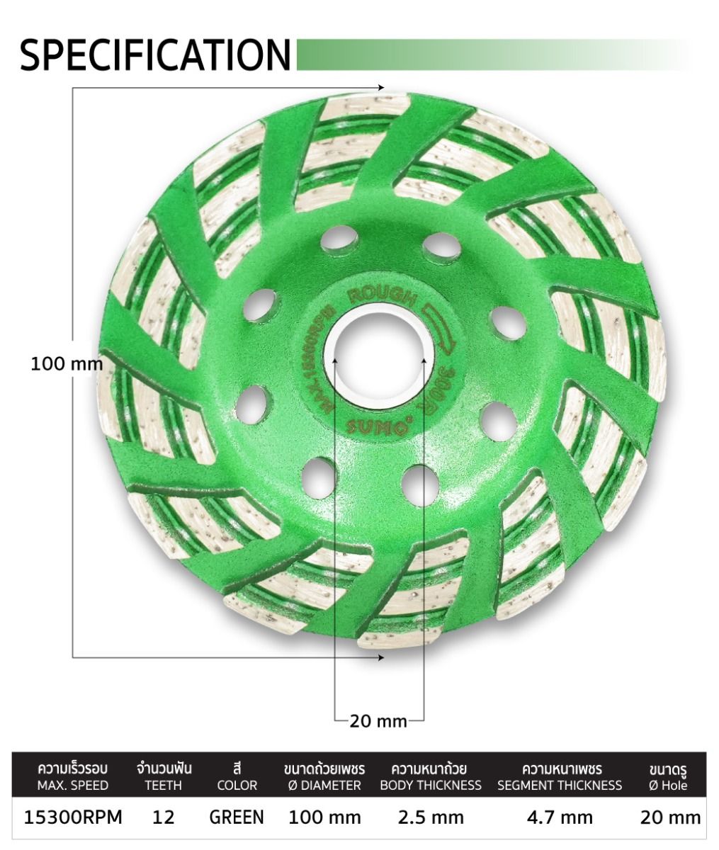 ถ้วยเพชรขัดพื้น 4" ขัดหยาบ 300R GREEN