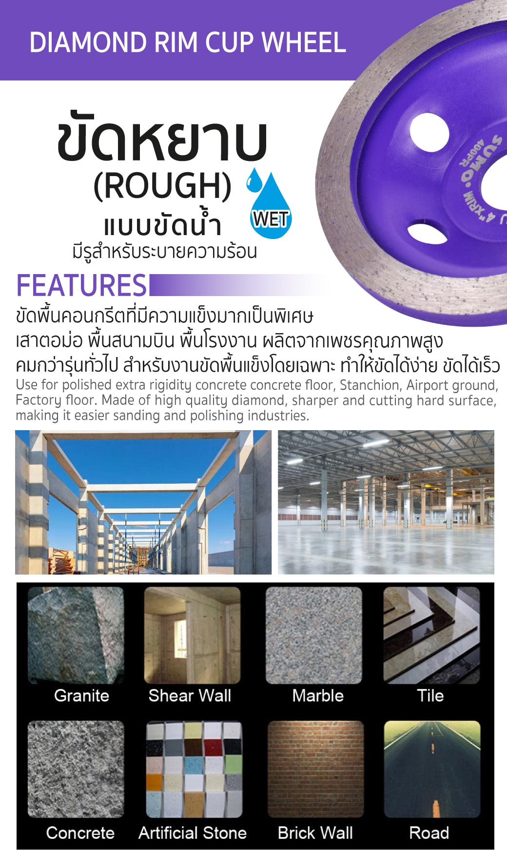 • ขัดง่าย ขัดเร็ว สำหรับขัดพื้นคอนกรีตที่มีความแข็งมากเป็นพิเศษ