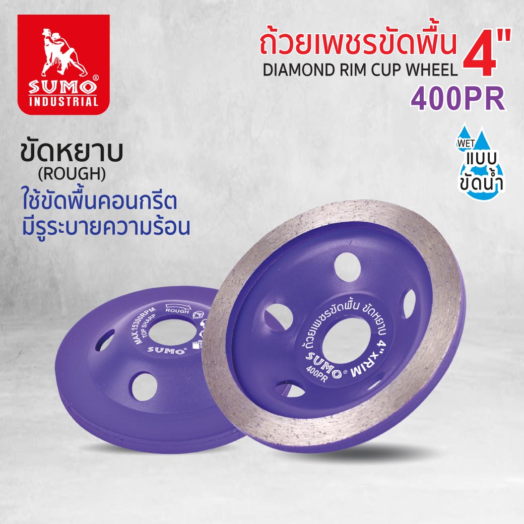 ถ้วยเพชรขัดพื้น, ถ้วยเพชร 4 นิ้ว, ถ้วยเพชรขัดพื้น 4 นิ้ว, ถ้วยเพชรขัดพื้น 400 PR, ถ้วยขัดพื้น, ถ้วยเพชร, ถ้วยเพชรขัดหยาบ, ถ้วยเพชรขัดพื้น สีม่วง, ถ้วยเพชรขัดพื้น RIM, ถ้วยเพชรขัดพื้น SUMO