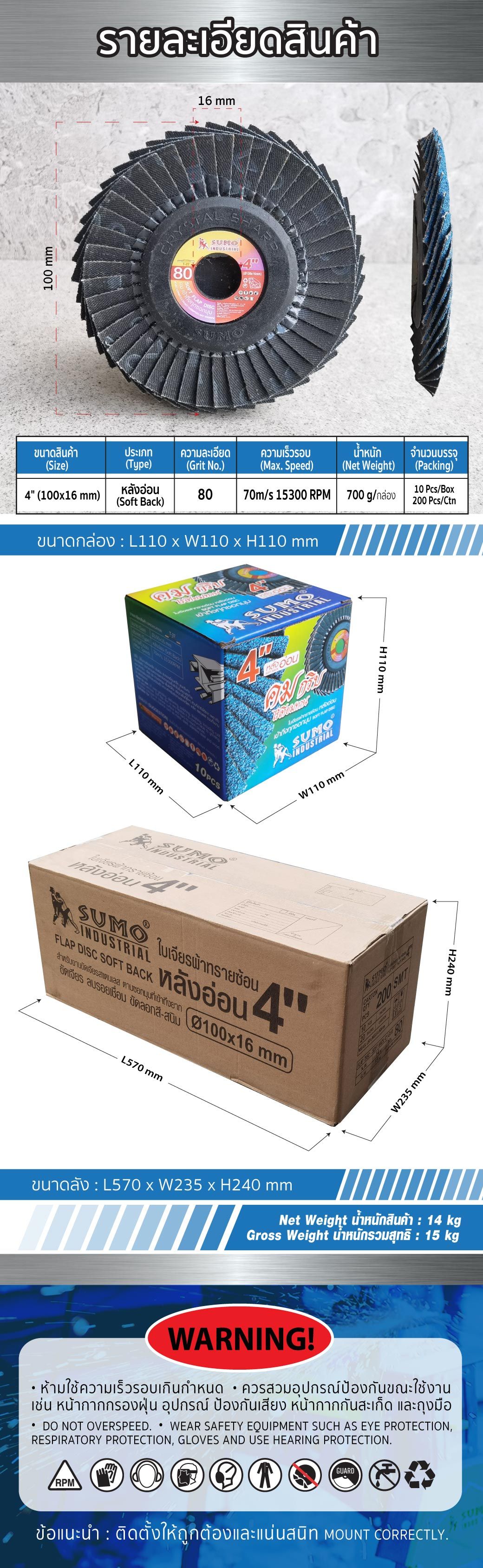 รายละเอียดใบเจียรผ้าทรายซ้อน หลังอ่อน SUMO