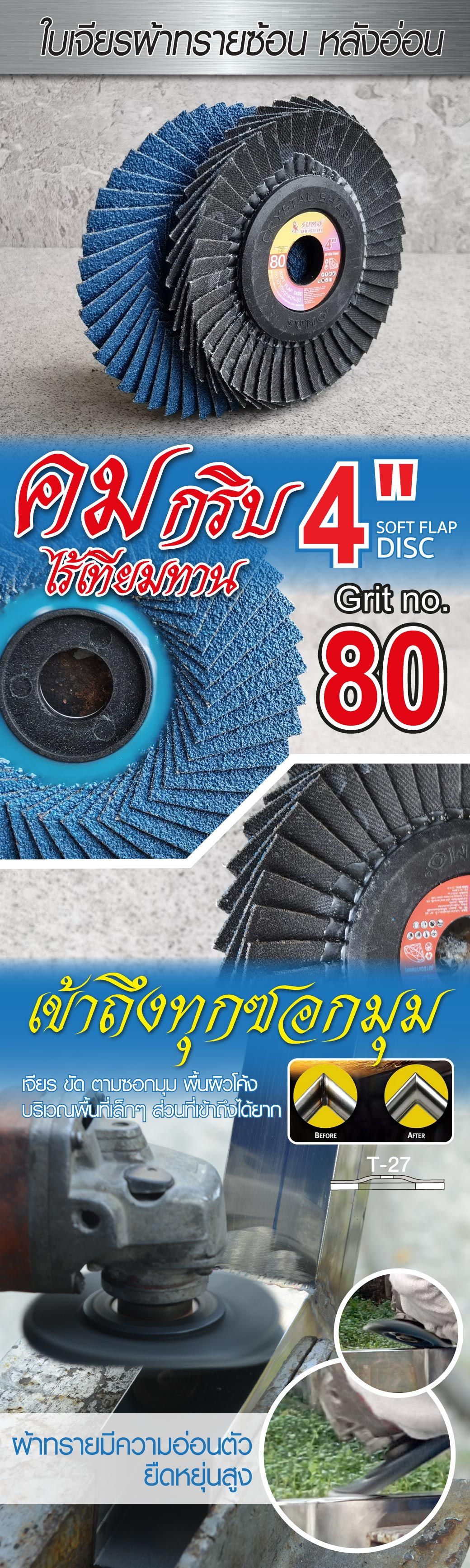 รายละเอียด ใบเจียรผ้าทรายซ้อน 4” No.80 หลังอ่อน