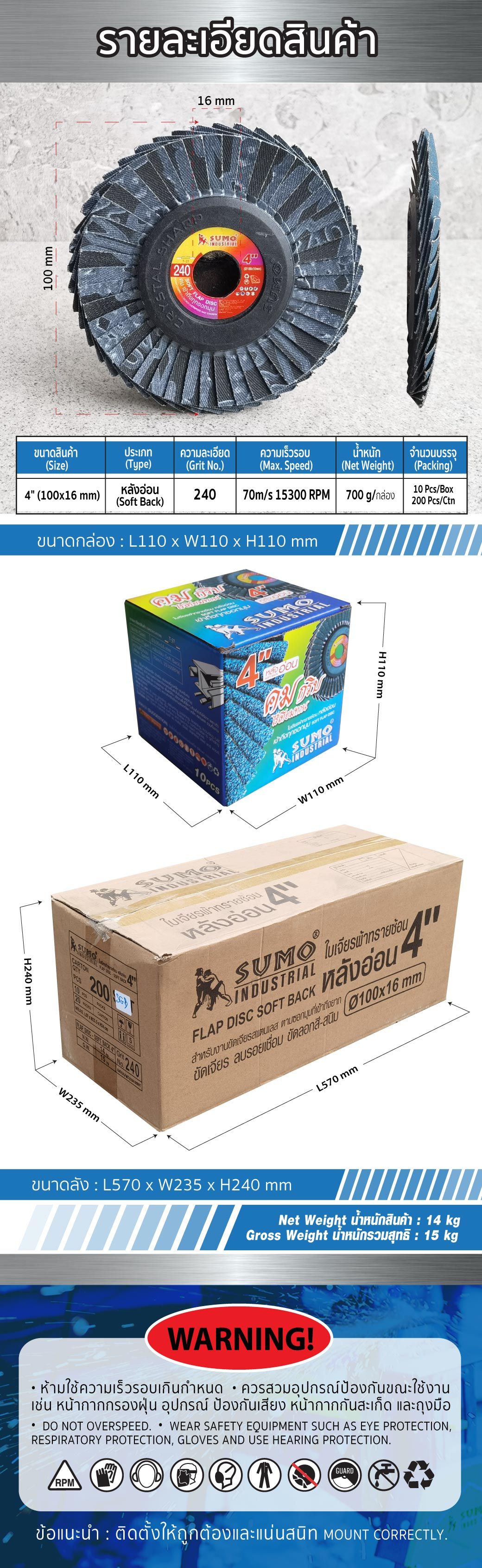รายละเอียดใบเจียรผ้าทรายซ้อน หลังอ่อน SUMO