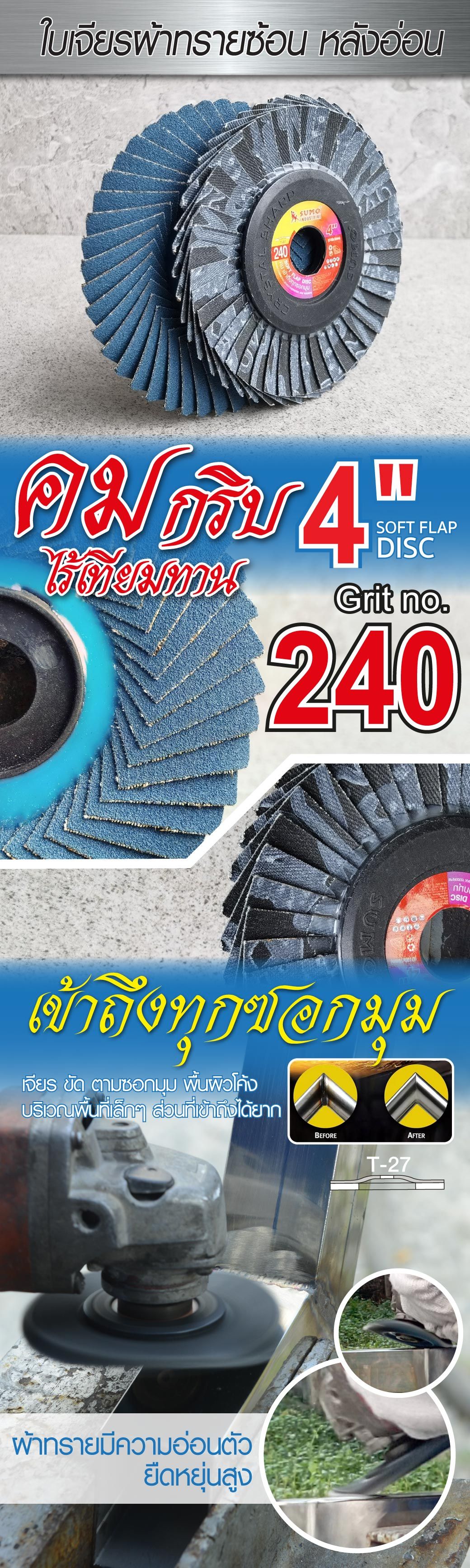 ใบเจียรผ้าทรายซ้อน 4" No.240 หลังอ่อน SUMO