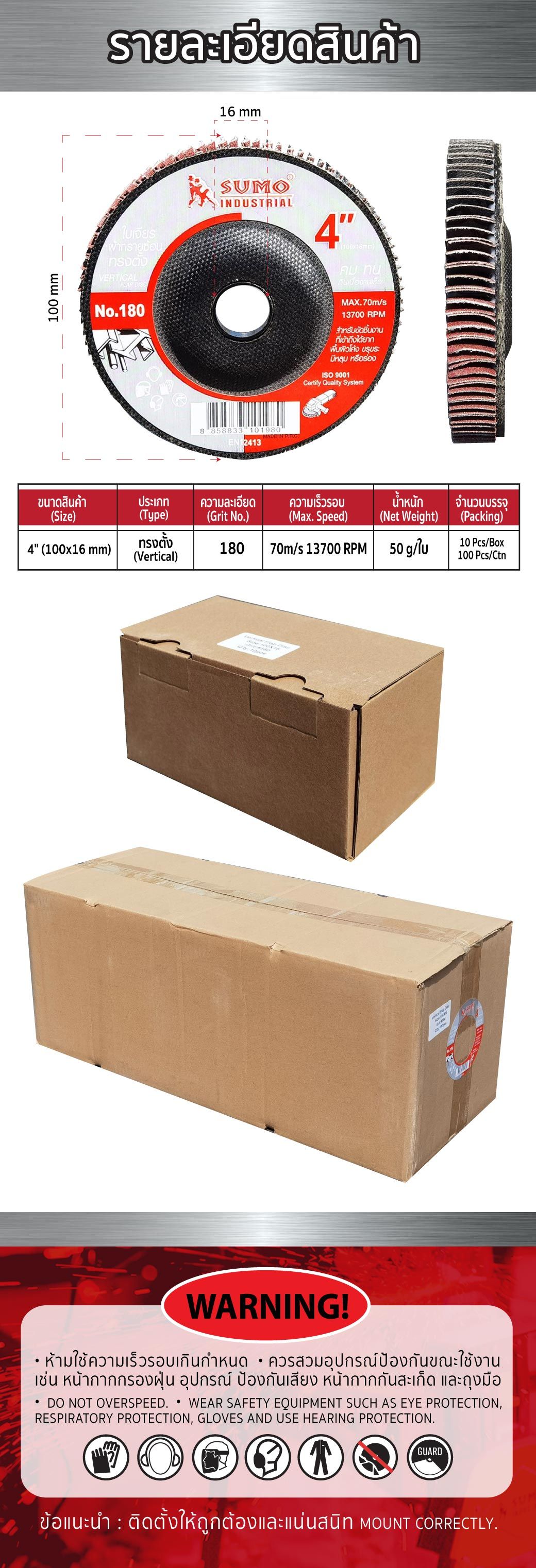 คุณกำลังรีวิว:ใบเจียรผ้าทรายทรงตั้ง 4” No.180 SUMO