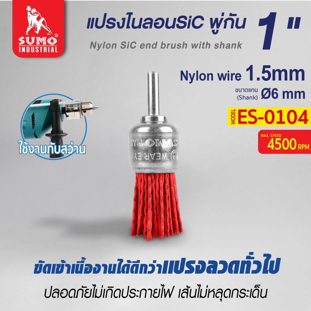Nylon end brush with shank 1"x6x1.5mm SUMO