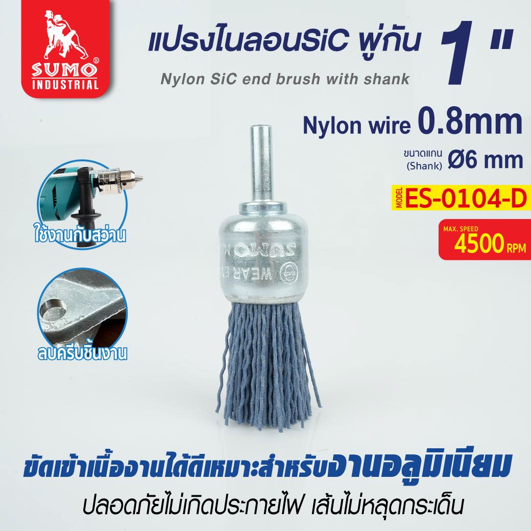 Nylon end brush with shank 1"x6x0.8mm SUMO