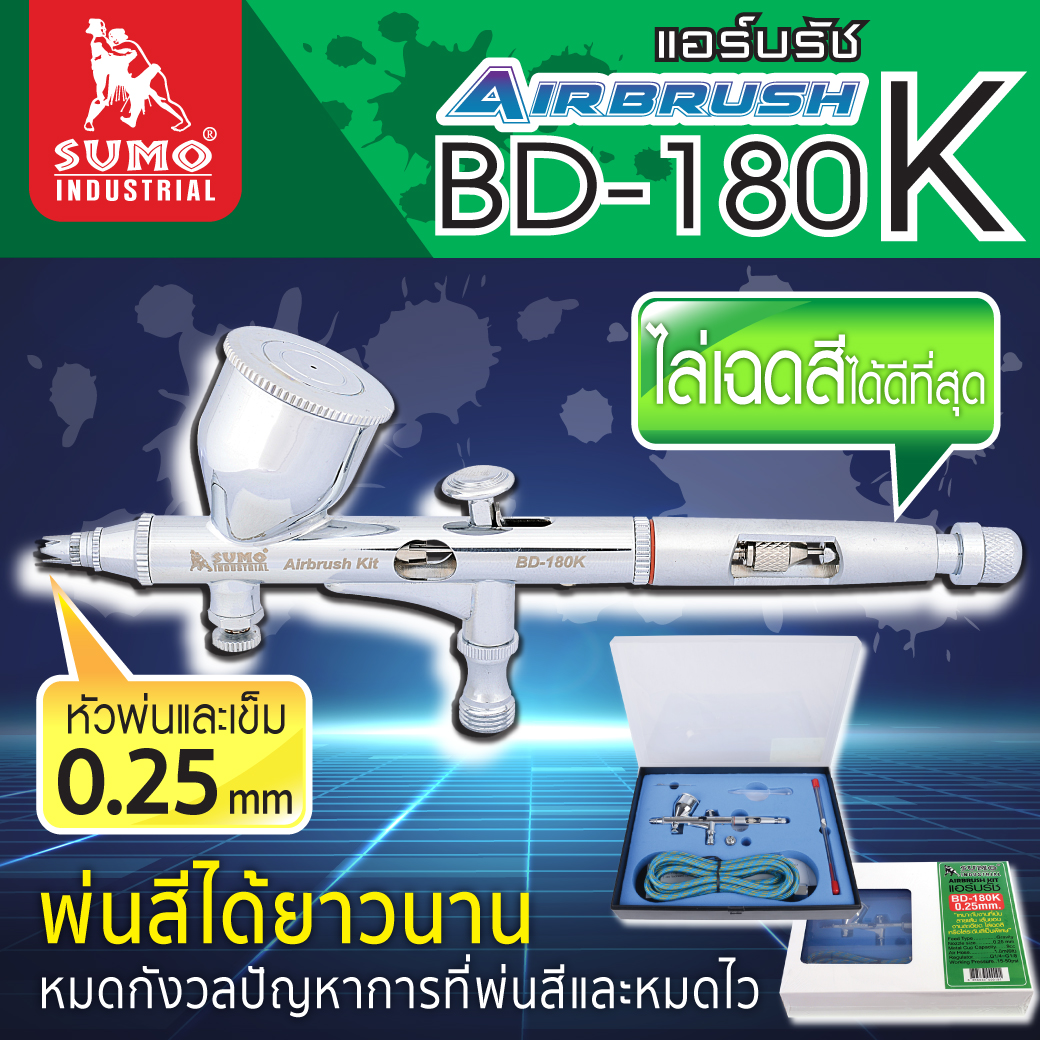 ชุดแอร์บรัช รุ่น BD-180K 0.25mm SUMO พ่นสีได้ยาวนานหมดกังวลปัญหาการที่พ่นสีและหมดไว